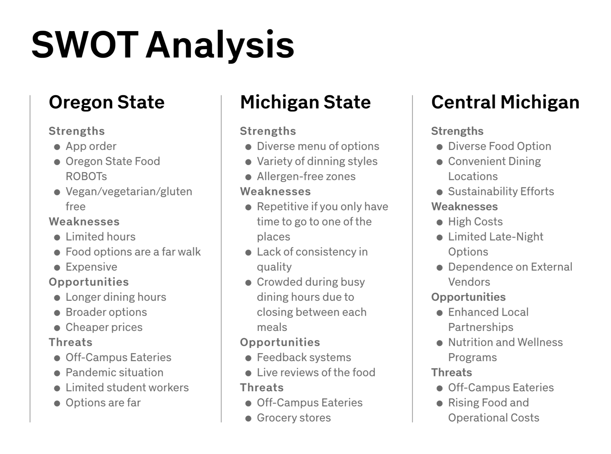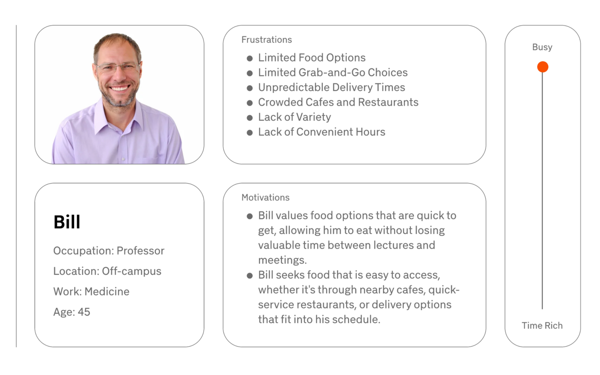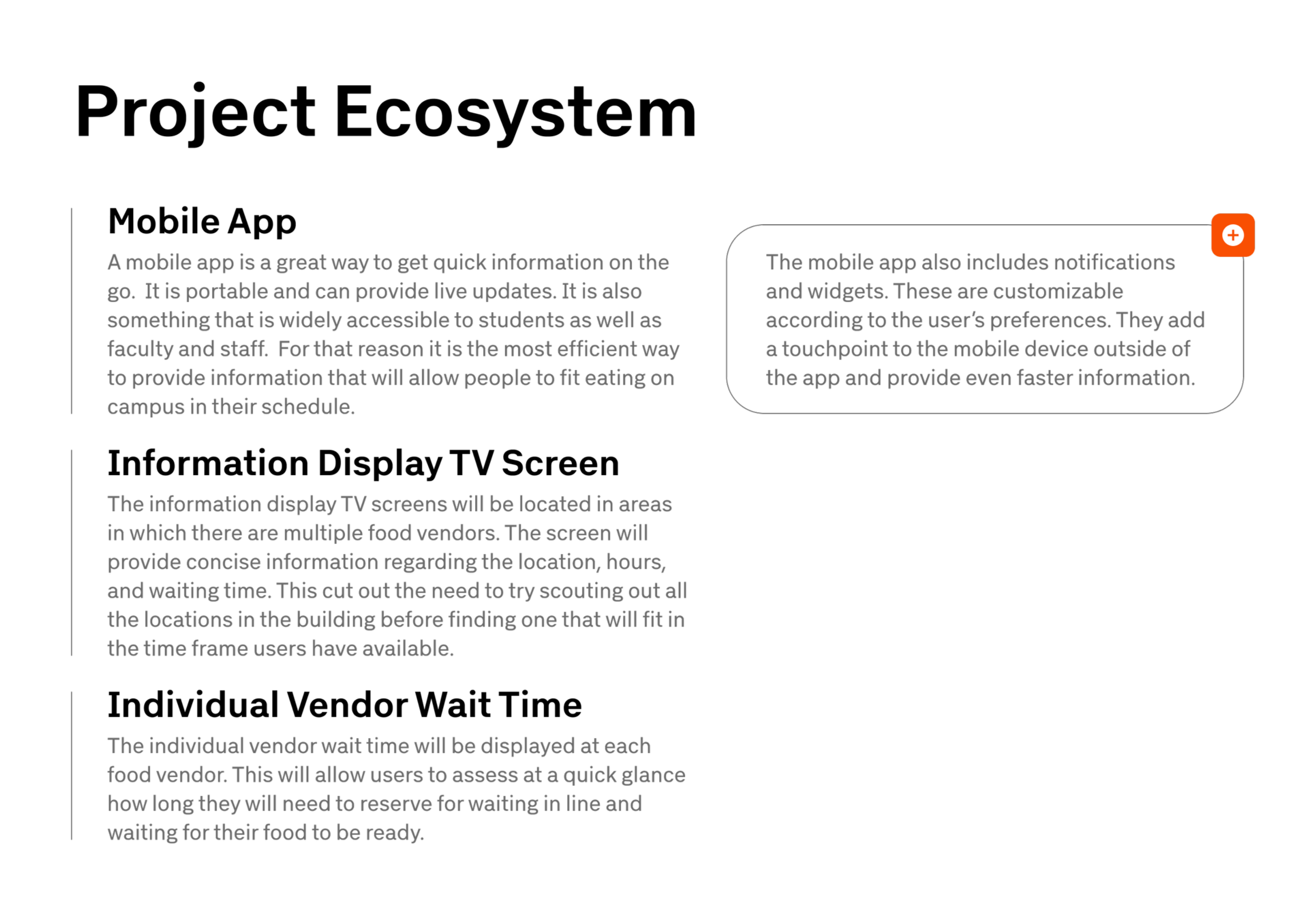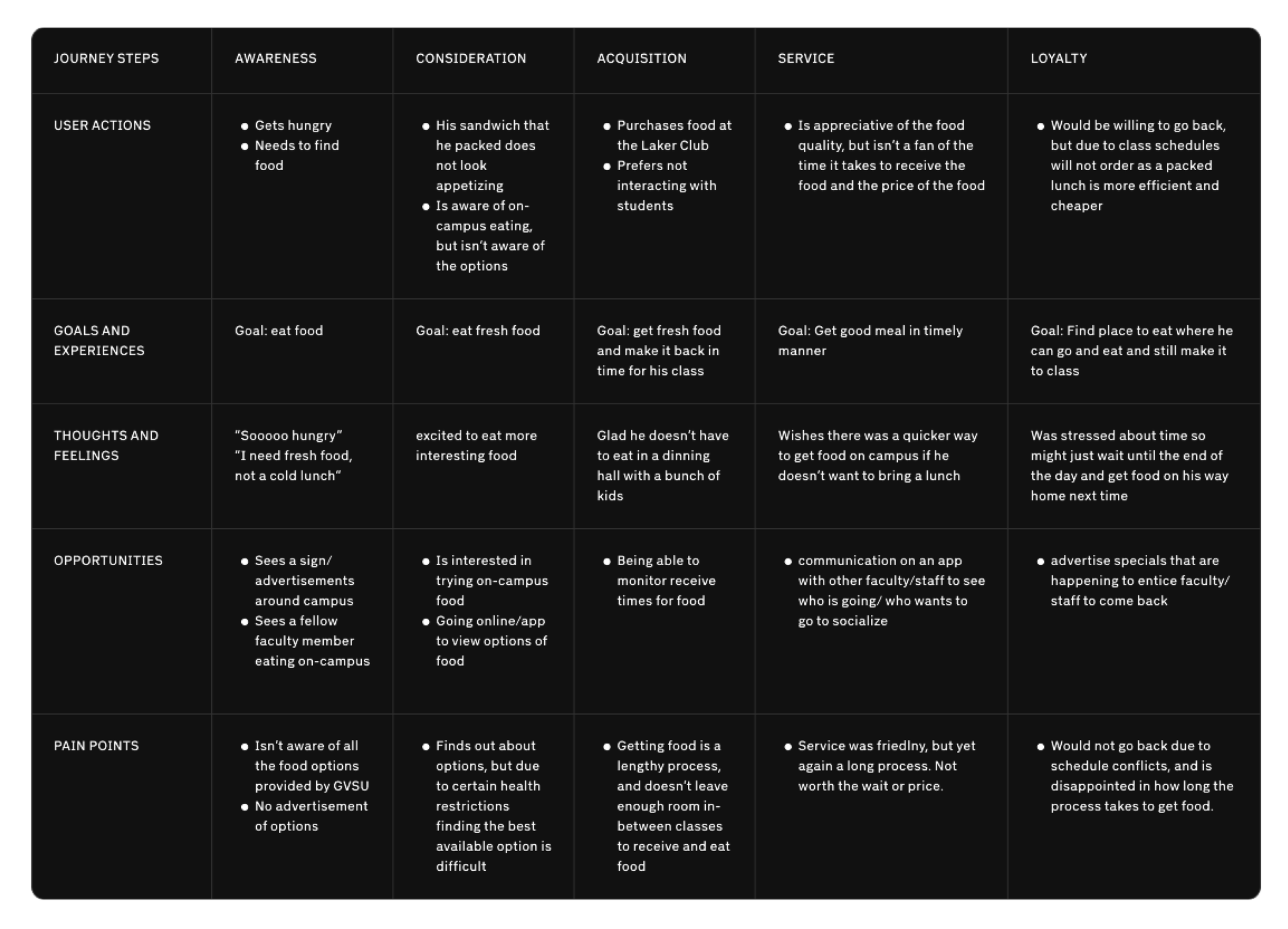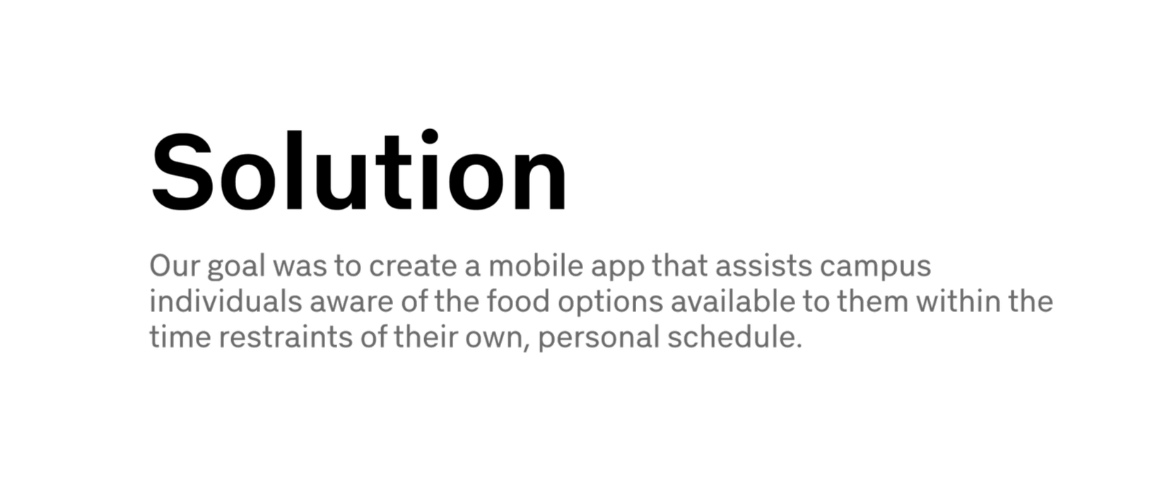Student group project of a mobile app that assists campus individuals aware of the food options available to them within the time restraints of their own, personal schedule.