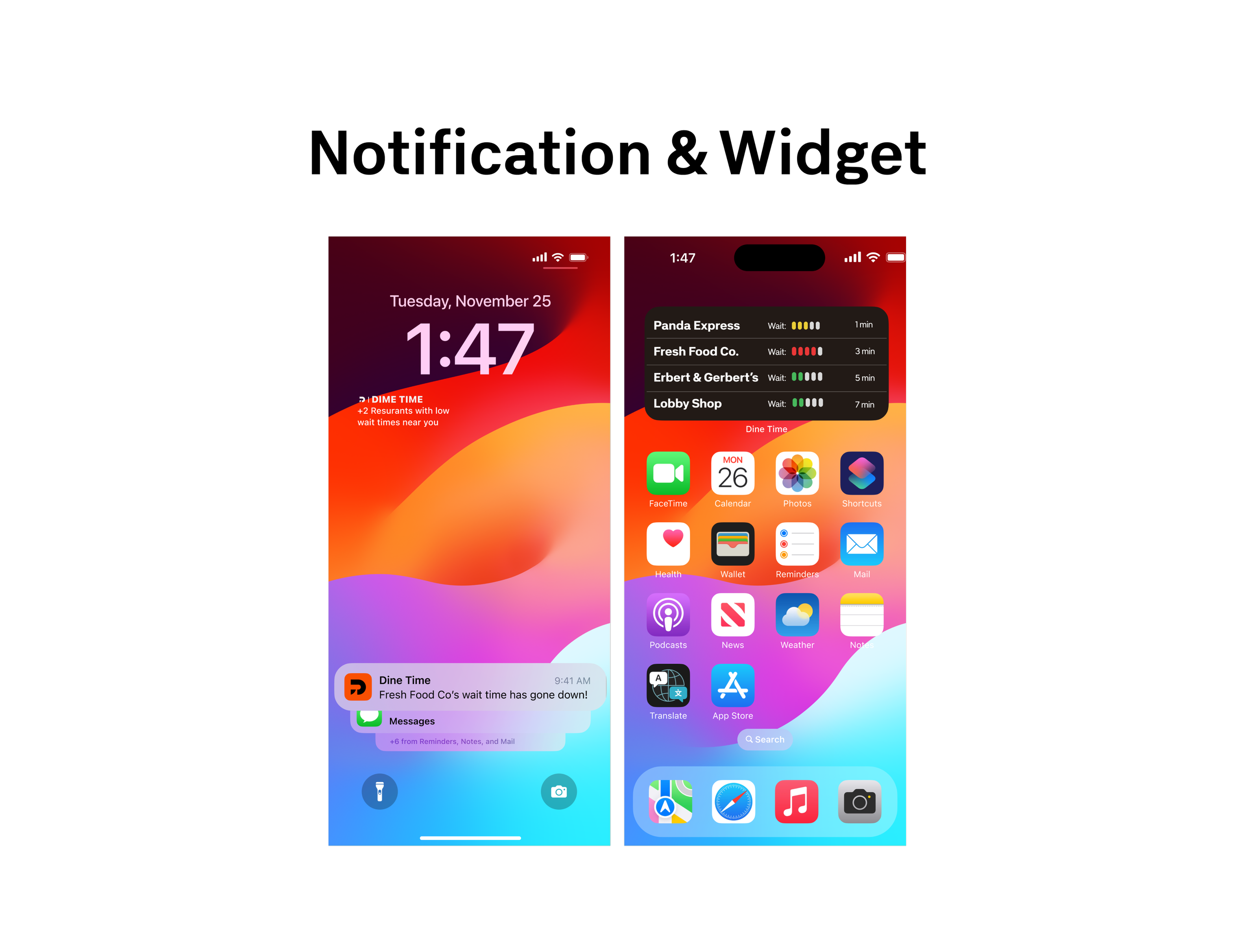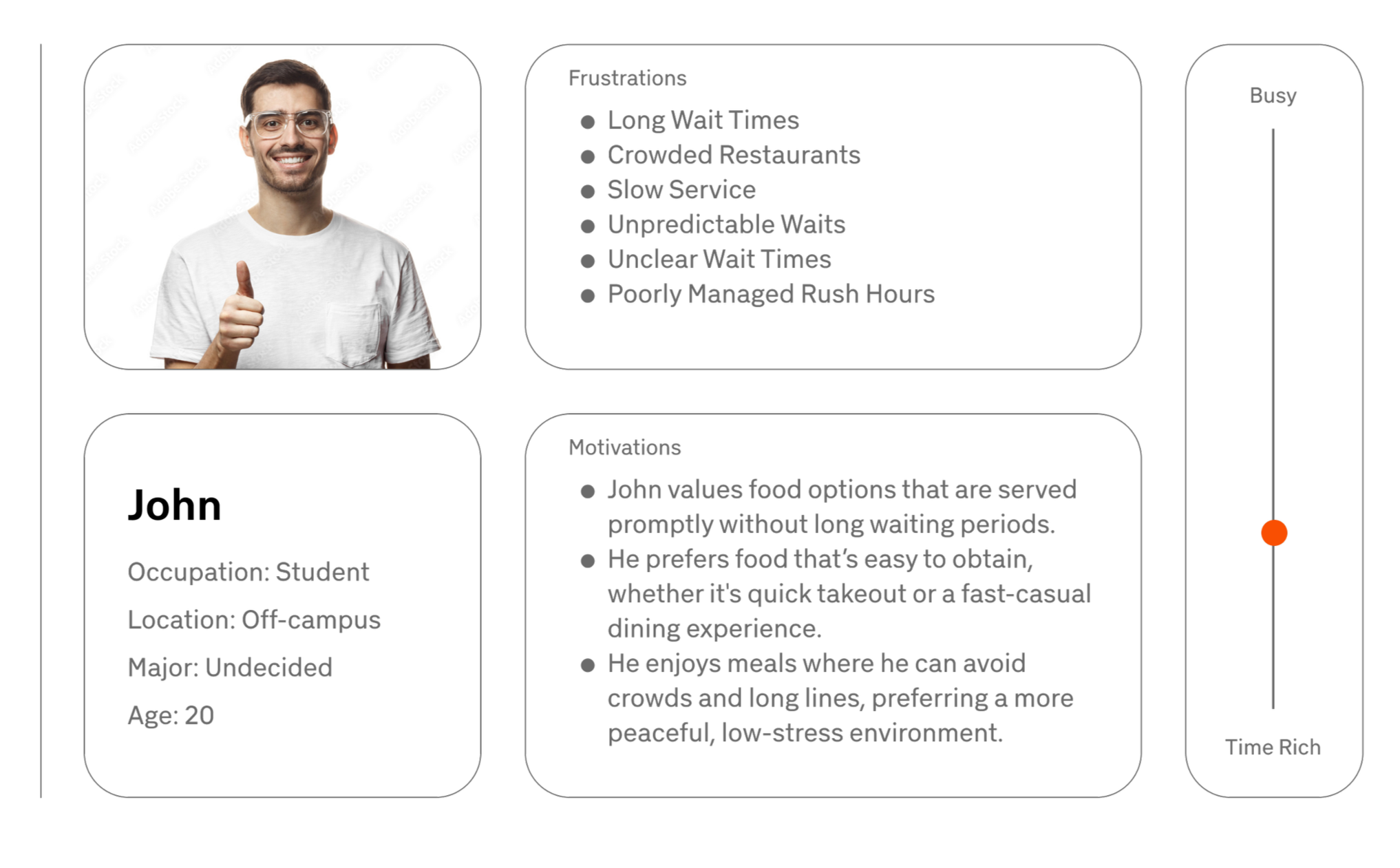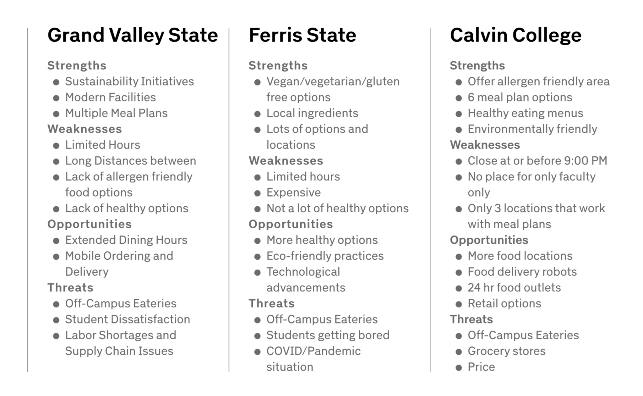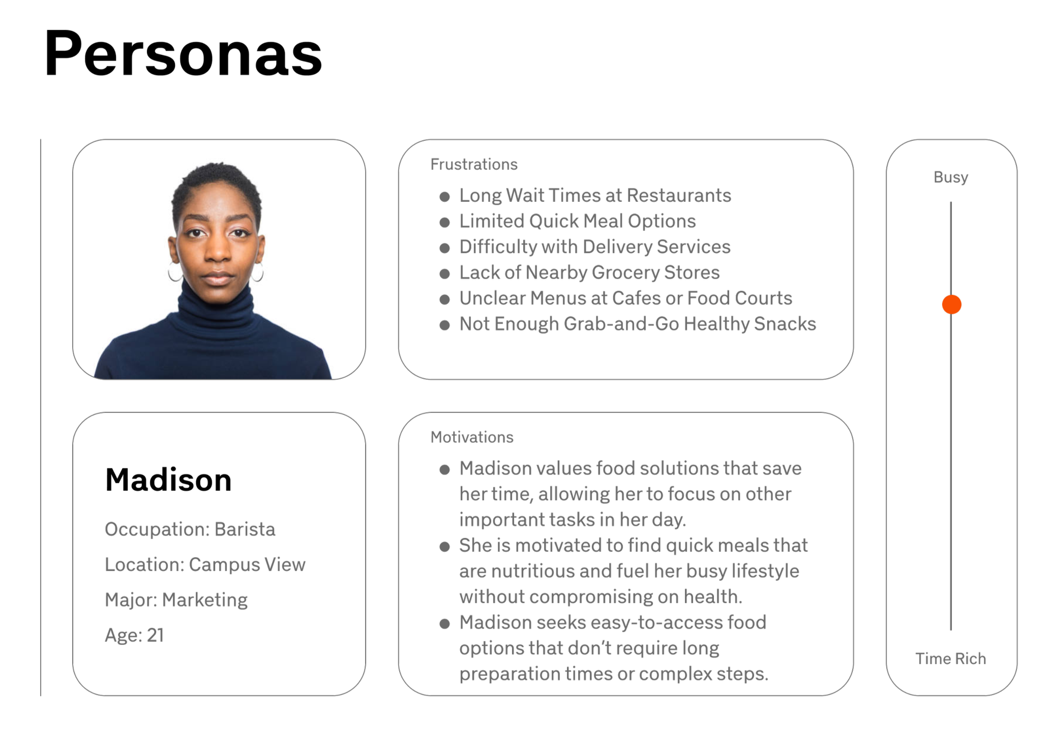 Student group project of a mobile app that assists campus individuals aware of the food options available to them within the time restraints of their own, personal schedule.